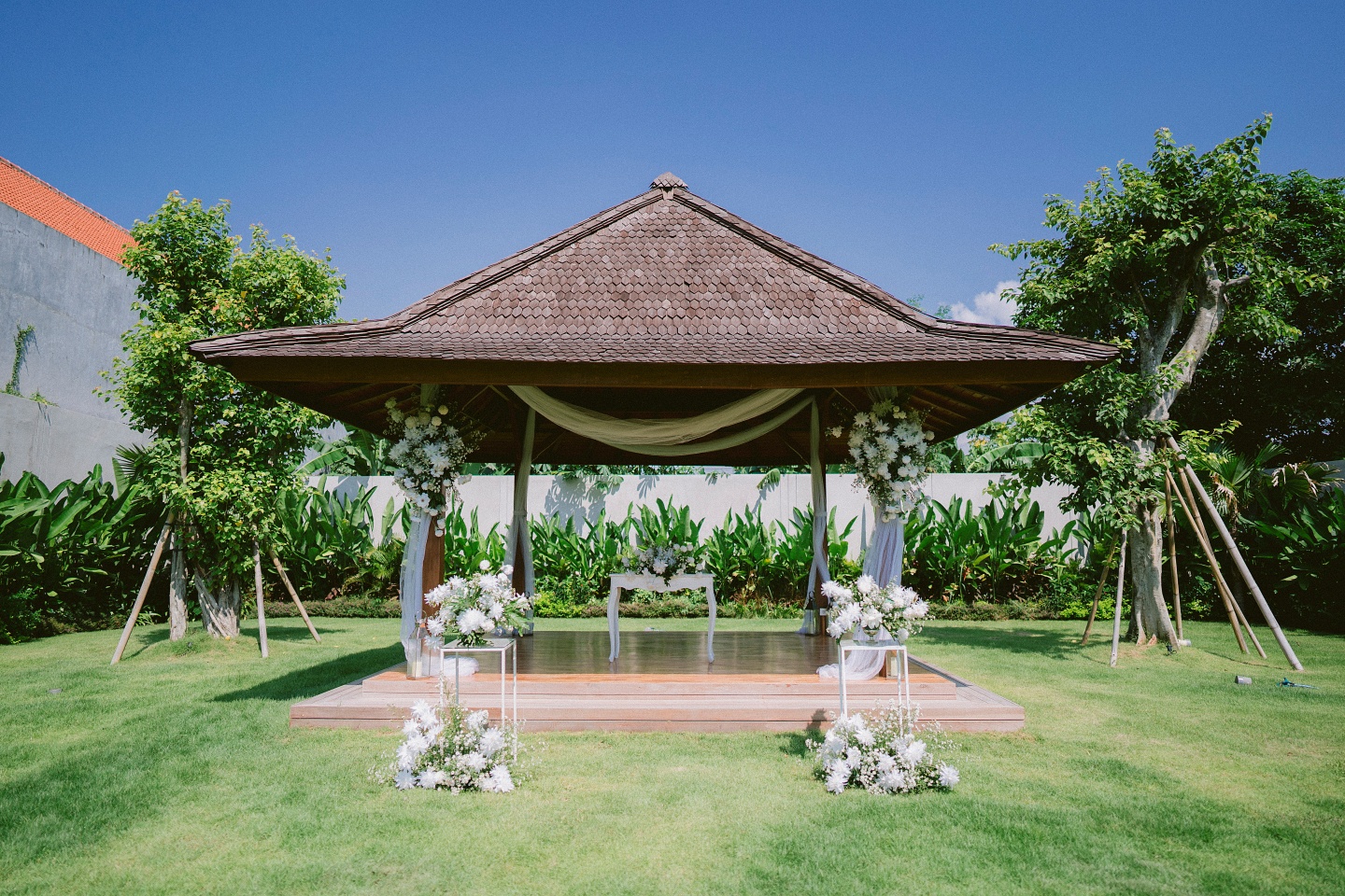 Guest Capacity: Up to 200 guests (for standing events). - Accommodation: Can sleep up to 31 adults in 18 available rooms/villas (mandatory minimum 3-night stay for wedding packages). - Venue Options: Beautiful garden areas, a swimming pool area, and flexible outdoor spaces. - Event Support: Provides catering, decoration, entertainment, and photographer services (via villa management).