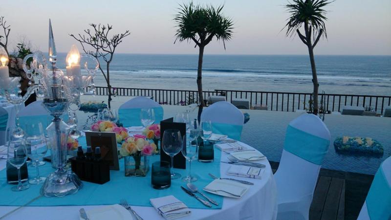 Located in south part of Bali,Sawangan beach offers rich of wedding venue option for your intimate wedding in Bali .There an array of hotel can be found in these cliff top with Indian ocean view, one of those are Samabe suite and villas .Samabe Bali can be reached within 30 minutes drive by car from Denpasar Ngurah Rai Airport .Samabe Bali offers you 81 suites and villas , 2 restaurants and 2 bars.The accommodation categories devided into : ocean fromt honeymoon,ocean front honeymoon pool suite,Ocean front family suite ,ocean front family pool suite ,ocean front Samabe suite and ocean front Samabe pool suite .Pampering your holiday and wedding in Samabe with a abundant facilities provided includes:pool, fitnest center, Spa, beach, Lumba lumba kind clubs, Hospitality lounge, business facilities, boutique and drugstore