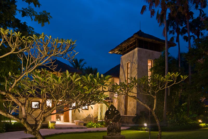 Villa Arika is decorated in an eclectic fashion with a very tasteful mix of classic wood and marble pieces along with more contemporary rattan furniture. The cushions and silk pillows are made of fabrics from all over Asia and are in rich hues of purple and gold. The artwork has been collected by the owner the past 25 years and is from some of Indonesia most famous artists.