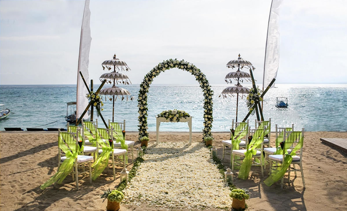 A happily ever after story begins from the day you walk in the aisle & the moment you pronounce wedding vow. The exquisite sunset on Nusa Lembongan beach will be the real backdrop of your holy matrimony. Sparkling turquoise ocean where the waves will become your wedding melody and the mesmerizing nightfall will kiss you to celebrate the beginning of your new life. Surrounded by beloved family & friends who can also enjoy the nature while witnessing your holy ceremony perfect your most important life event in ultimate bliss.
